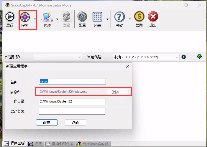 - 添加mstsc程序