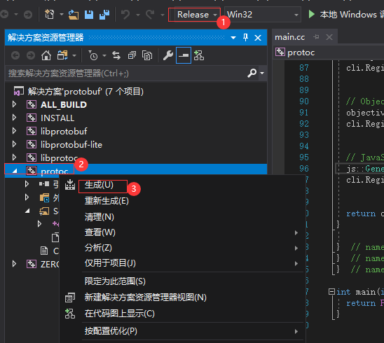 用vs打开,编译模式选择Release,右键protoc项目,生成就可以了。