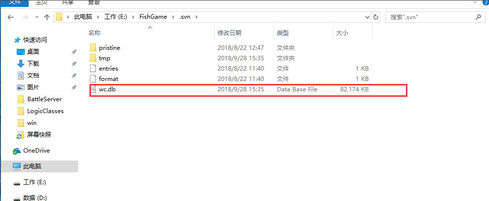2. 在svn工程目录下,有一个隐藏目录".svn",在这个目录下有一个wc.db文件。