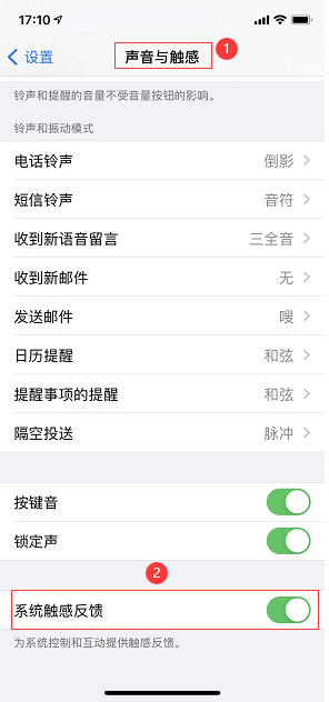 调用UIImpactFeedbackStyleMedium震动反馈接口时会受设置 -> 声音与触感 -> 系统触感反馈开关设置控制