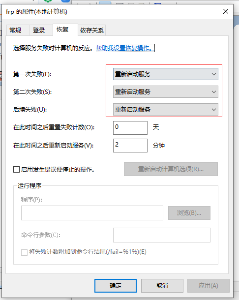 为了确保frpc在连接失败后自动尝试重新连接,在恢复tap页进行如下设置