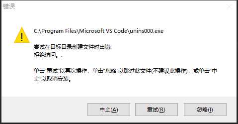 VS Code 运行时会弹出unins000.exe 尝试在目标目录创建文件时出错