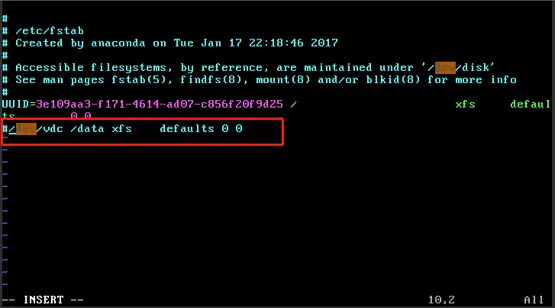 vim /etc/fstab