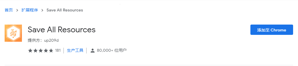先在Google Chrome网上应用店中搜Save All Resources,直接添加至Chrome