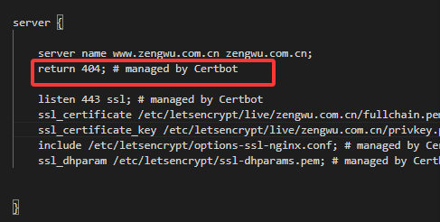 Certbot 配置好 SSL 后,需要编辑生成的配置文件 (通常在 /etc/nginx/sites-enabled/),将 return 404改为proxy_pass 指向您的后端 HTTP 端口。