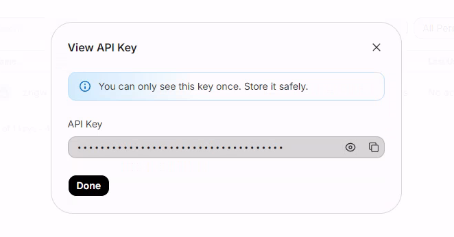 - 记录API Key,这个只显示一次哦