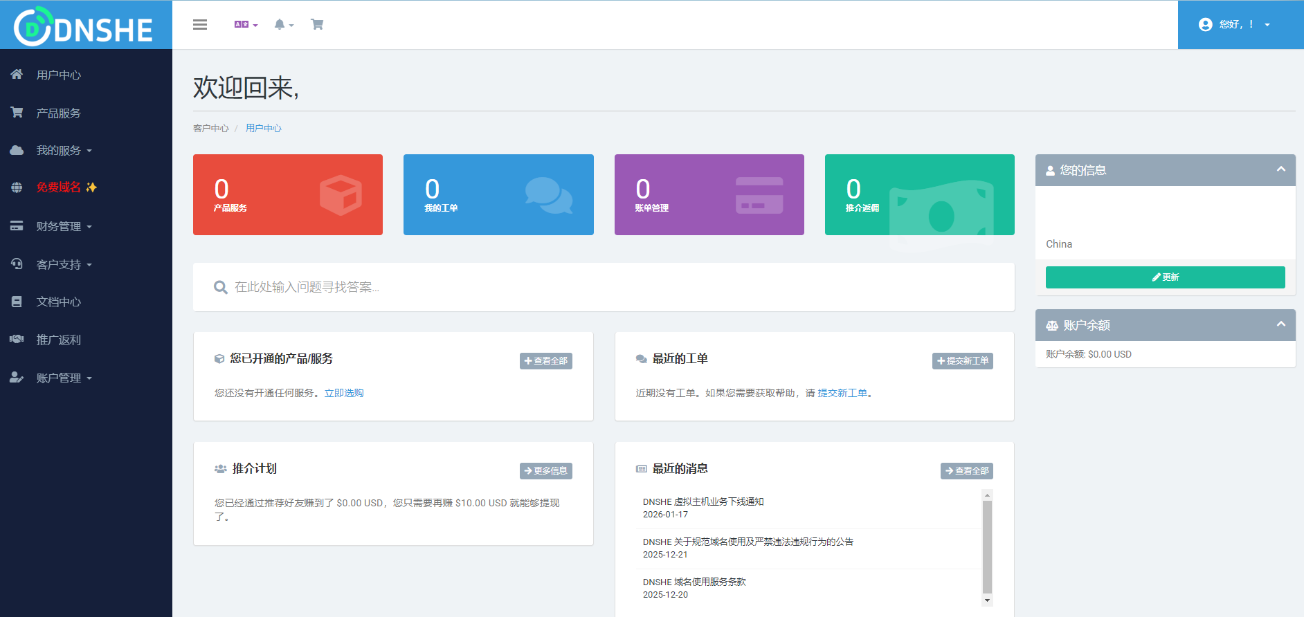 - 进入 DNSHE 官网 https://dnshe.com -> 切换中文 -> 免费注册