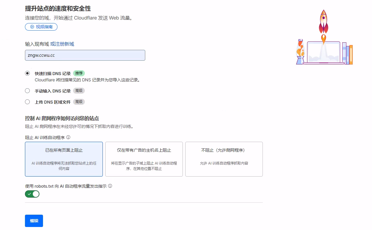 - 等到完成页面出现,说明域名已经托管给Cloudflare了