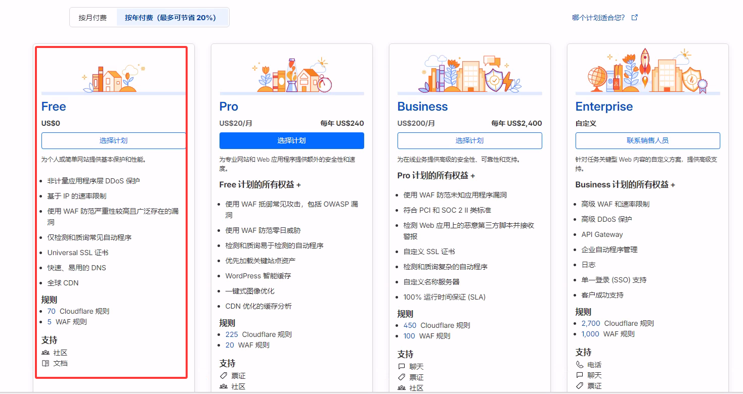 - 选择免费的计划就可以了