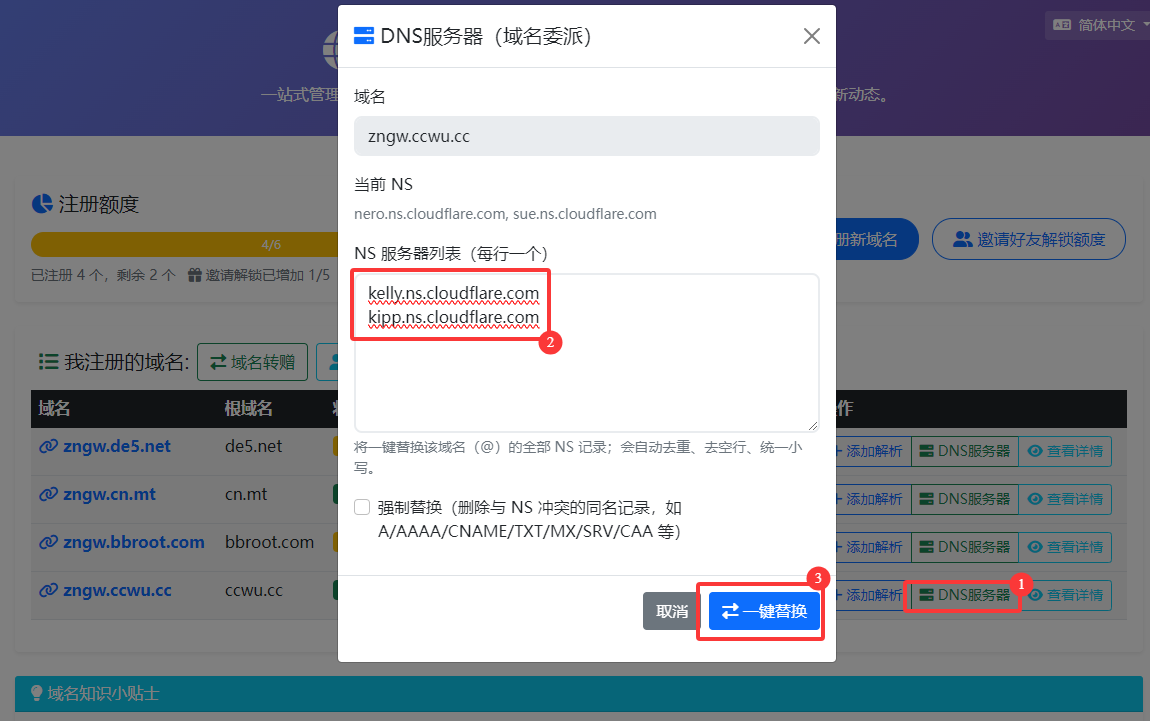 - 将域名托管给Cloudflare