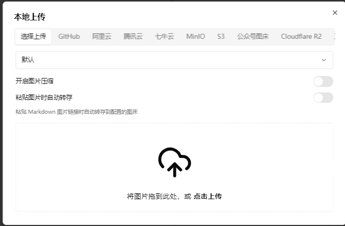 这是 doocs/md 的杀手级功能。支持 13 种图床: