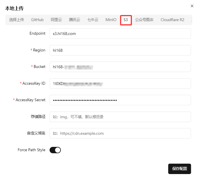 - 保存,回到「选择上传」,选择S3开始上传图片