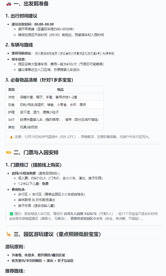 于是,前一天晚上,我兴致勃勃地打开AI助手,认真制定了一个“完美行程”——几点入园、游览路线、先看哪个表演、中午在哪吃饭、下午打卡哪些动物区……连拍照的最佳机位都安排上了。