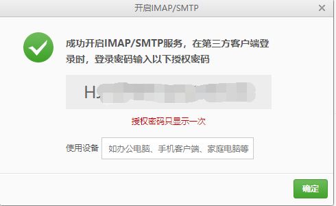 7. 添加账号密码,这里的密码为前面设置页面中的授权码