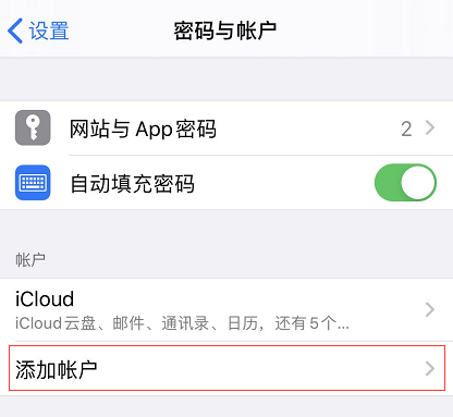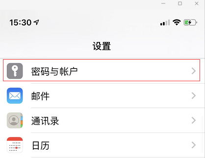 4. 进入手机设置->密码与账户