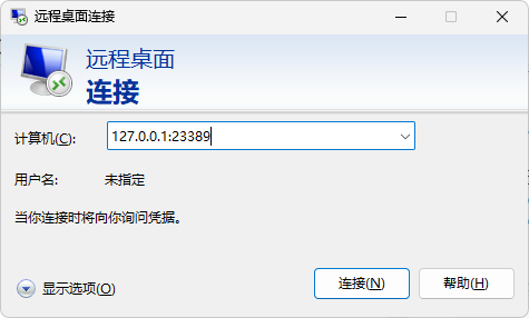 # 发起连接的客户端电脑的23389端口远程桌面链接到被连接客户端电脑3389端口电脑