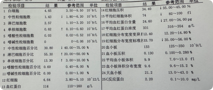 来到医院,医生问了一下情况,直接开检查:小儿CRP+血常规+流感病毒抗原测定。