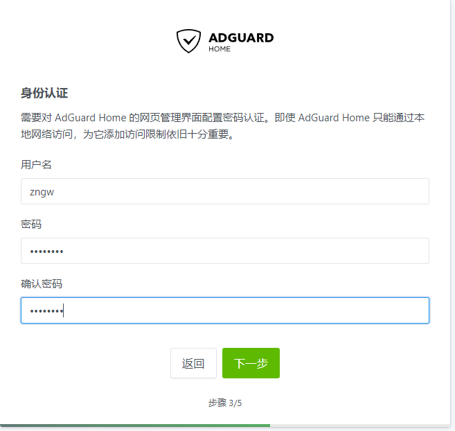 将后台的访问端口还是更改为默认的3000,DNS 端口保持为 53 即可。