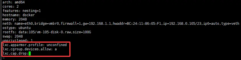 进入主机shell, 编辑/etc/pve/lxc/[模板ID].conf配置文件,在最后加入代码