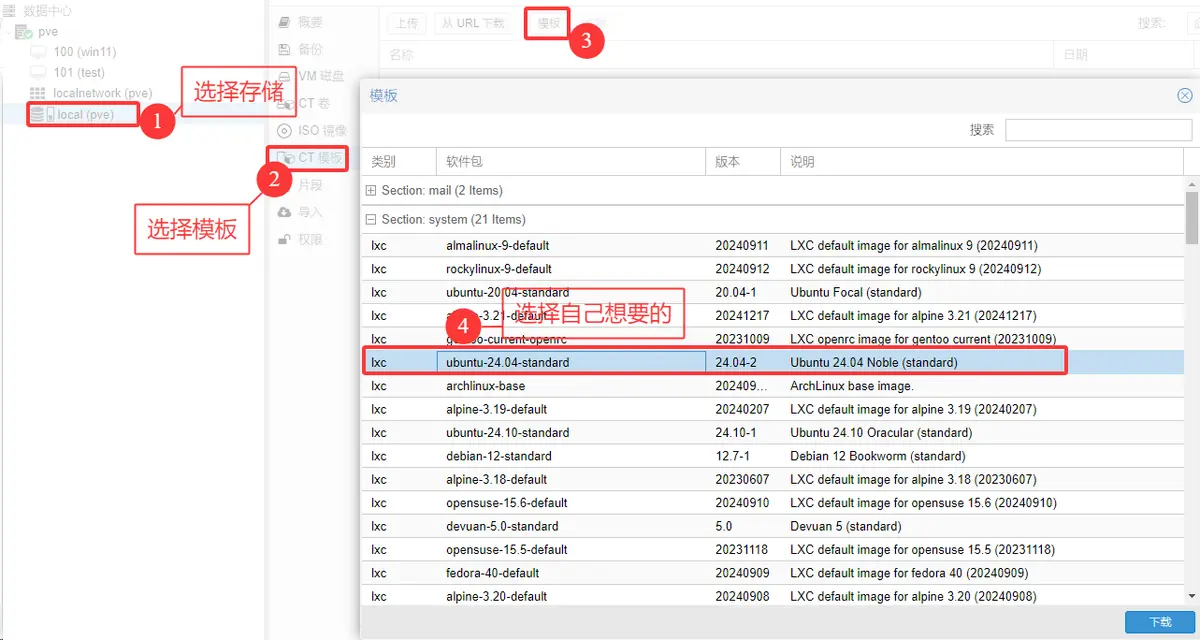 考虑到国内的网络环境,我们用默认的源,下载太慢或无法下载,我们先把ct模板的源替换为清华源。进入Pve主机输入: