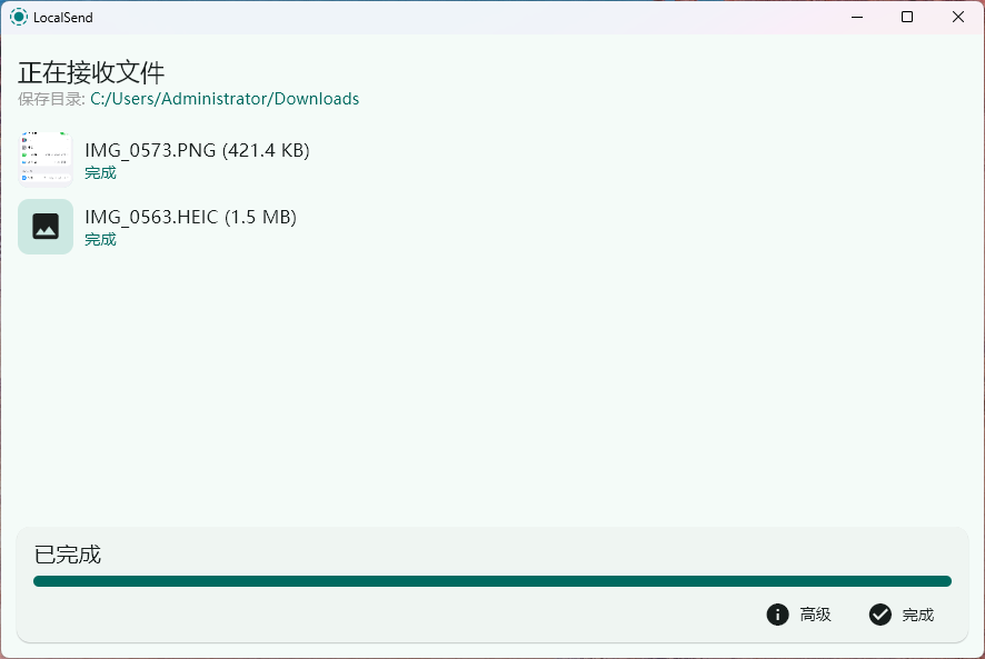 - 接收完成后,默认会在下载目录,这个也可以在设置里调整