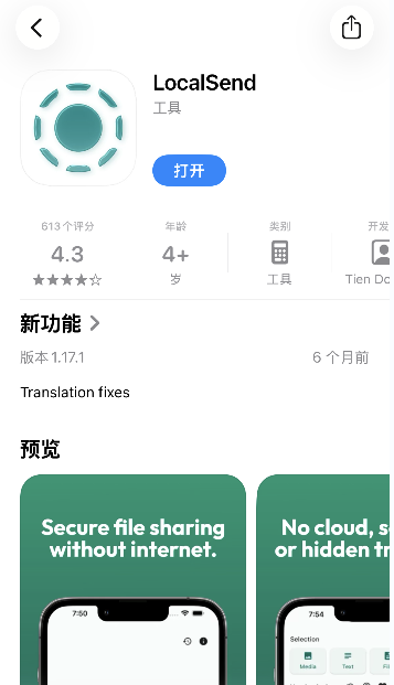 - iPhone 下载,进入 AppStore, 搜“LocalSend”安装就可以了