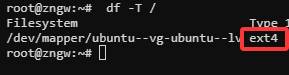 因为 Ubuntu 默认使用 ext4 文件系统(也可能是 xfs,但 ext4 更常见),需要根据实际类型扩展。