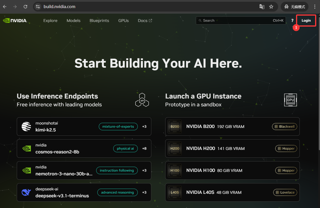 - 进入 NVIDIA 大模型主页 :https://build.nvidia.com。需要正规的浏览器(如:Chrome),不然可能会出现 A client-side exception has occurred的错误哈。