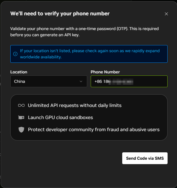 - 地址选择China,手机号要用**+86**开头,再输入国内手机号。
