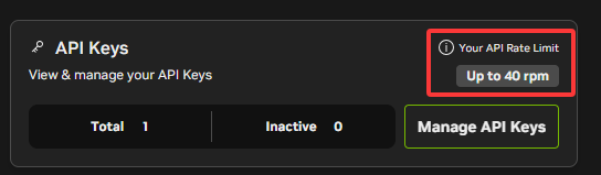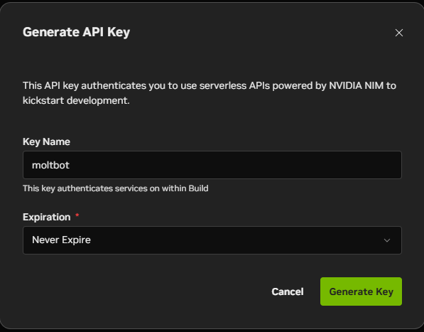 前面OpenClaw安装并配置阿里百炼API,稍微测试了一下,让它自己调整了一些配置,然后一看token消耗了10多万,按阿里qwen3-max的费用十多块每百万Token来算,一二块钱就没了,真是一个烧钱的助手哈。在网上找到一个免费的 英伟达(NVIDIA)大模型,虽然有限制Your API Rate Limit Up to 40 rpm(每分钟40次请求),但应该也能用了吧,大厂有羊毛不薅白不薅。