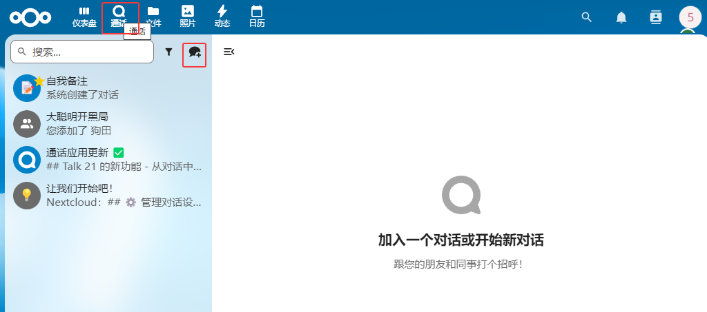 - 安装好Talk插件后,在导航栏多了一个通话的图标,选择进入通话页面