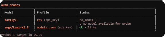 - 旁边那个 tavily/- 的 “no_model” 是正常的(Tavily 是搜索工具 provider,没模型可探)。
