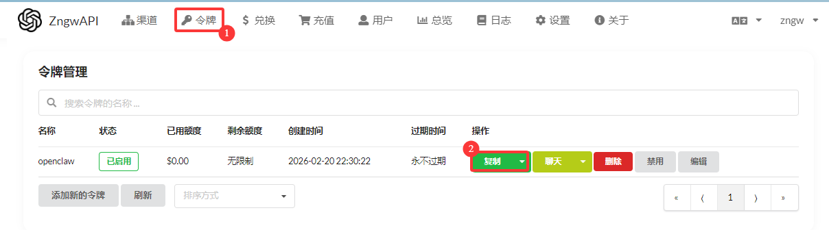 进入 令牌 → 添加新的令牌