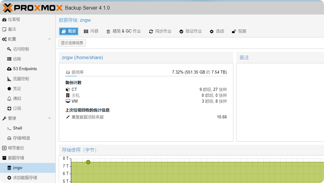 再回到pbs后台,zngw数据存储已经恢复正常了。