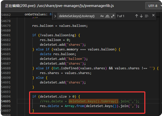 /usr/share/pve-manager/js/pvemanagerlib.js - 定位到出错行 (我这是54695行,行数不对的直接搜