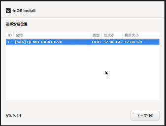 1. 启动等待几秒之后,会进入飞牛 fnOS 安装界面。