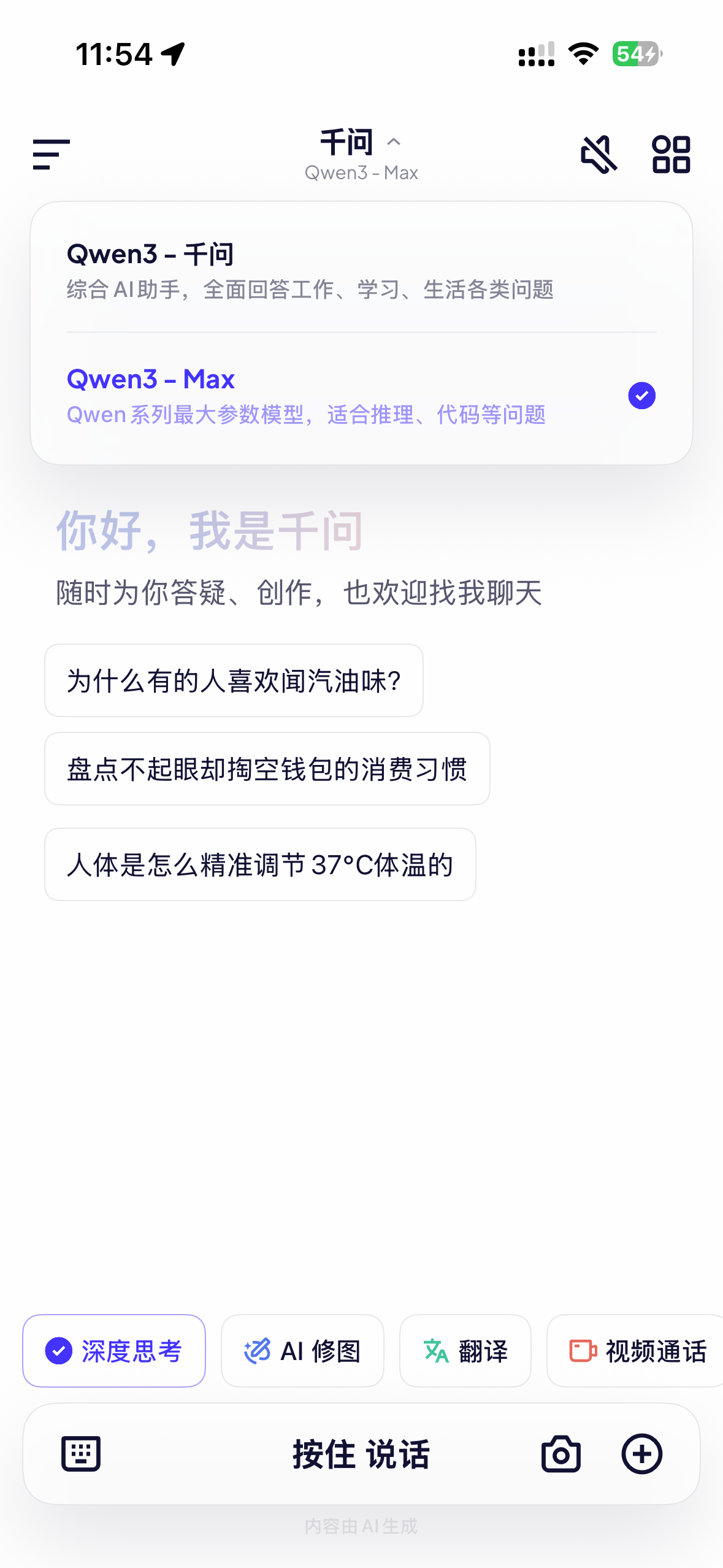 千问APP支持 Qwen3-千问和Qwen3-Max二款大模型。