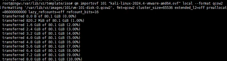 qm importovf 101 "kali-linux-2024.4-vmware-amd64.ovf" local --format qcow2