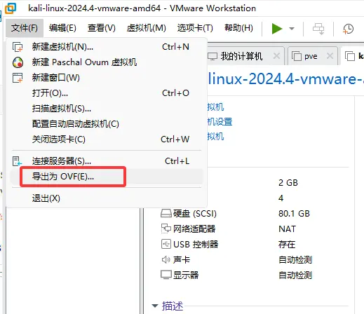 1、 在VMware中导出需要的虚拟机,导出格式为OVF