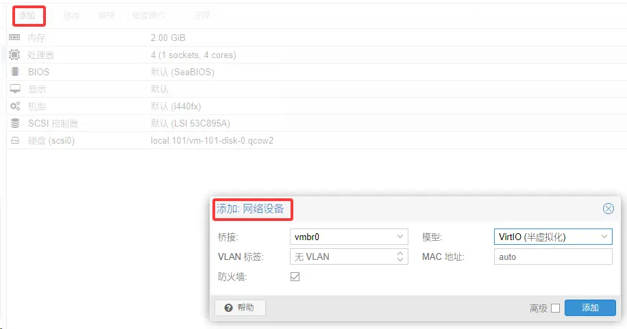 4、添加网卡