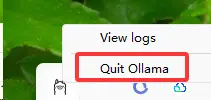 在右下角的导航栏可以看到Ollame标志,右键选择Quit Ollama就可以退出了。