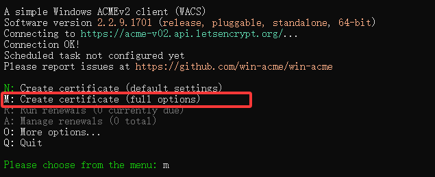 win-acme是一个适用于 Windows 的 ACMEv2 客户端,使用非常简单。