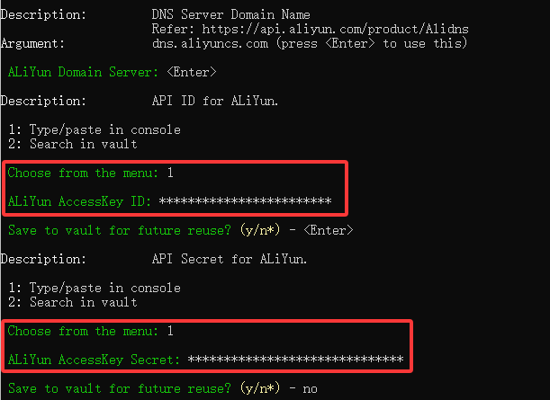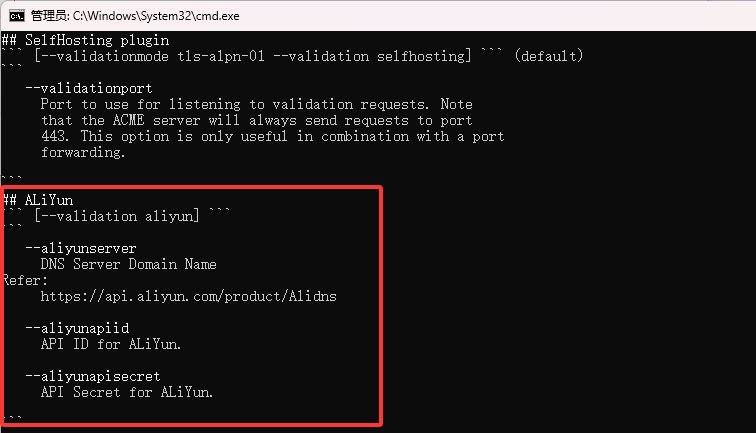 ps:如果用了其他的DNS运营商,可以使用 wacs.exe --help 查看具体怎么配置相关验证参数