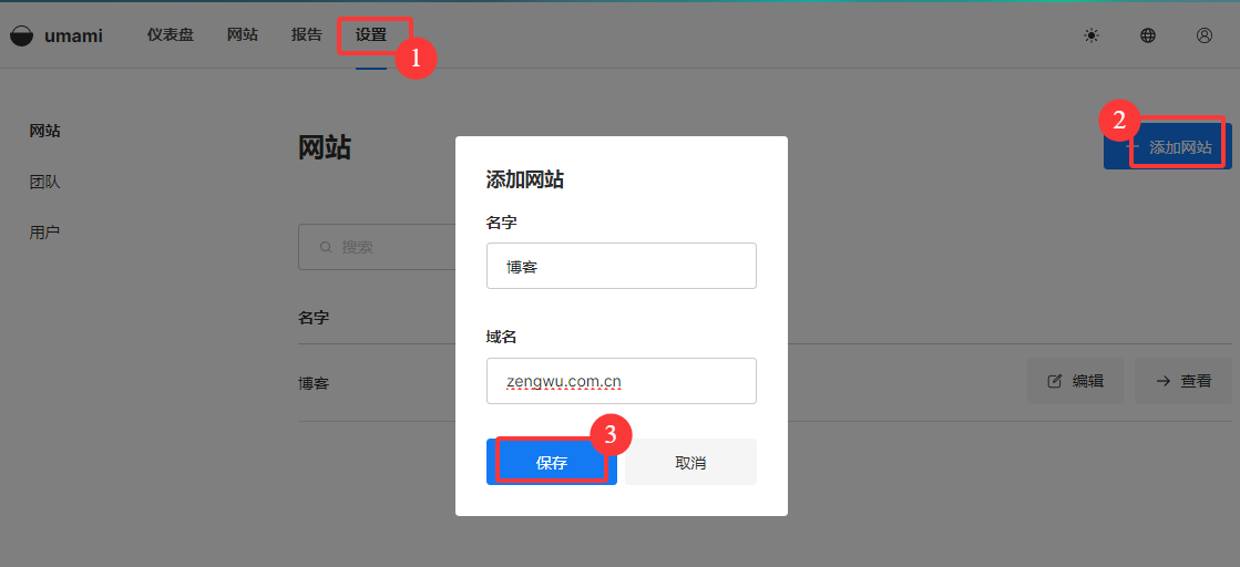 三、Umami创建网站