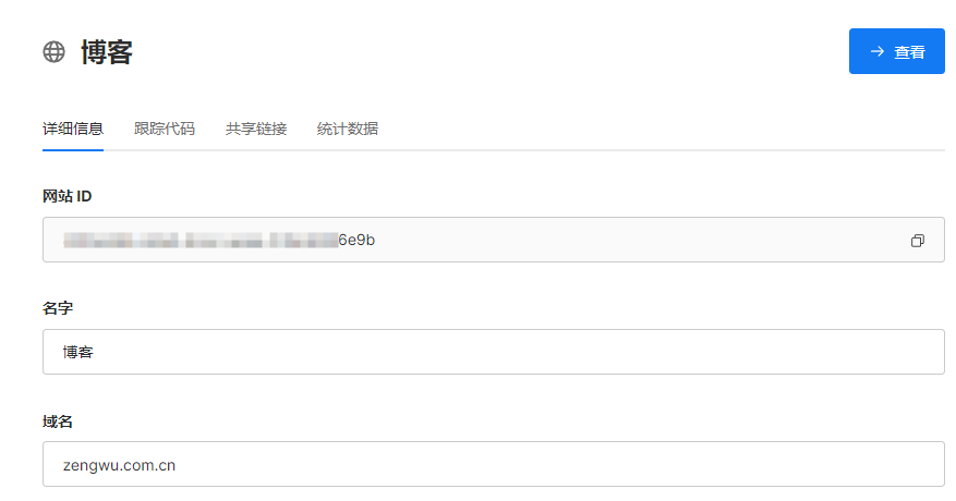 - 点编辑,查看记录网站ID、共享地址