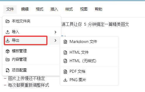 核心功能: Markdown 文档自动即时渲染为微信图文,一键发布多平台,也能直接复制到公众号上发布。