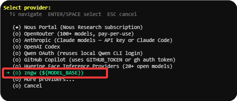 - 如果没有导入,可以选择上面的模型,如果这里没有你需要的模型,可以选择More Provider,选择其它的或自定义。
