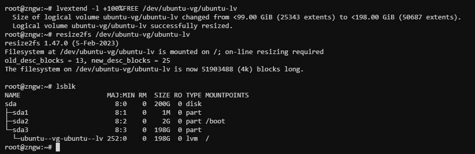 resize2fs /dev/ubuntu-vg/ubuntu-lv