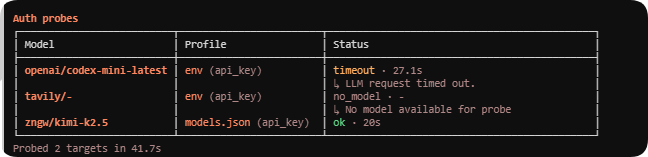 - 它把 openai/codex-mini-latest 当作一个“候选模型”加入了 Auth probes 列表。