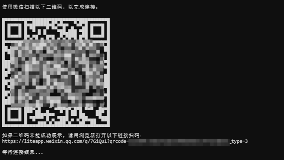 - 终端会弹出一个二维码(ASCII 字符画形式)